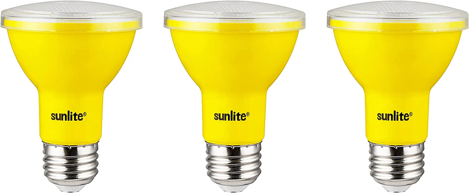 Sunlite 81466 LED PAR20 Colored Recessed Light Bulb, 3 Watt (50w Equivalent), Medium (E26) Base, Floodlight, ETL Listed, Yellow, Pack of 3