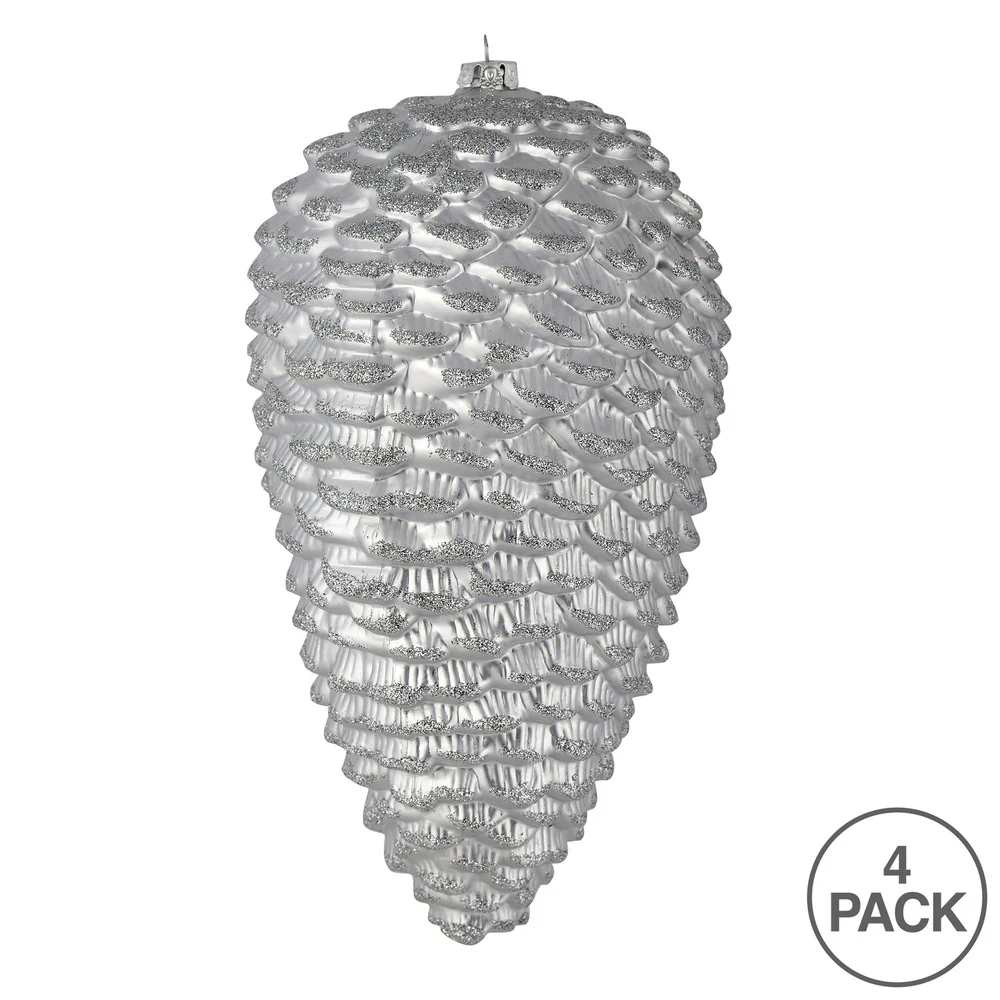 Vickerman 7" Silver Matte Glitter Pinecone Christmas Ornament 4 per pack