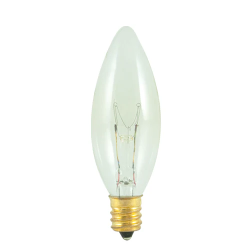 Bulbrite 15CTC/25/2 15 Watt Incandescent B8 Torpedo Chandelier Bulb, Candelabra Base, Clear