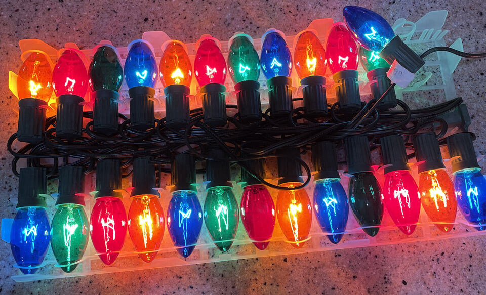 Multicolored Finish Christmas Light String Set, C9 Shape, 12 Foot, Intermediate Base, Green Wire, 25 Light Holder with 12" Spacing Between Lights