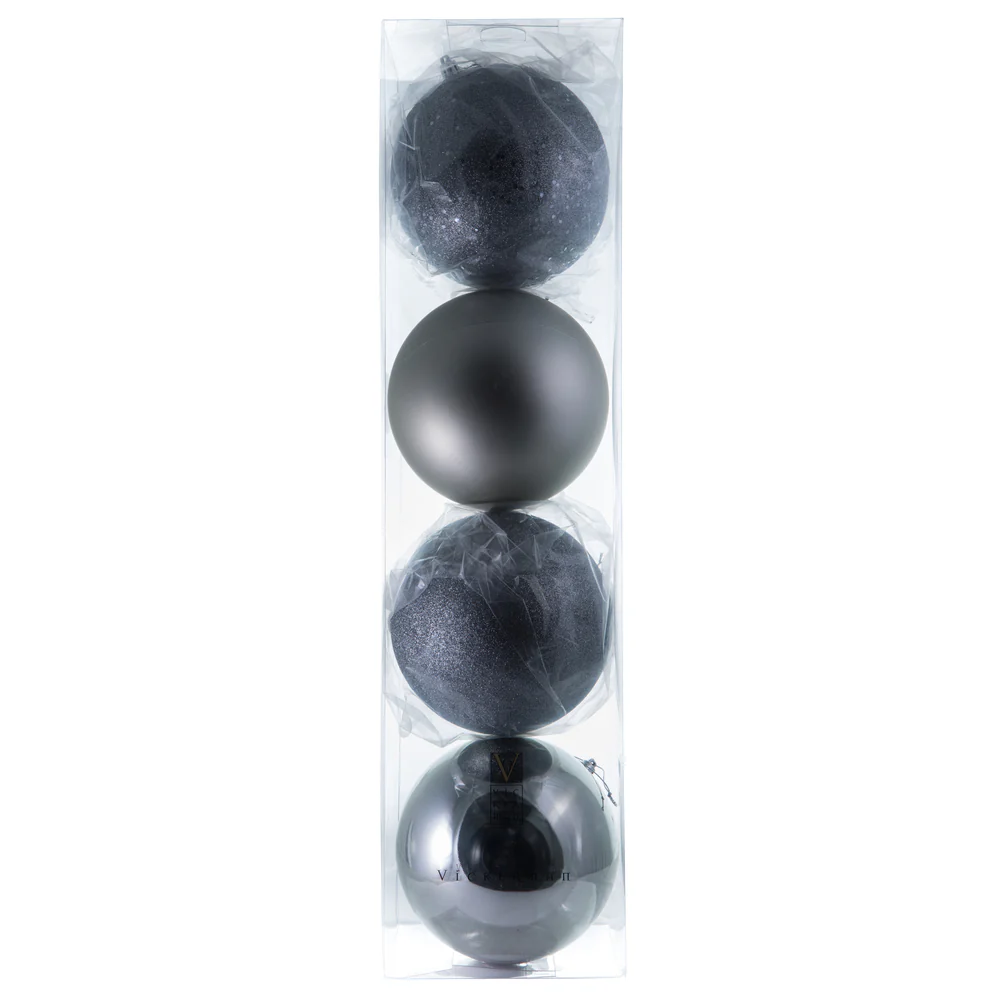 Vickerman 6" Silver 4-Finish Ball Ornament Assortment 4 per Box