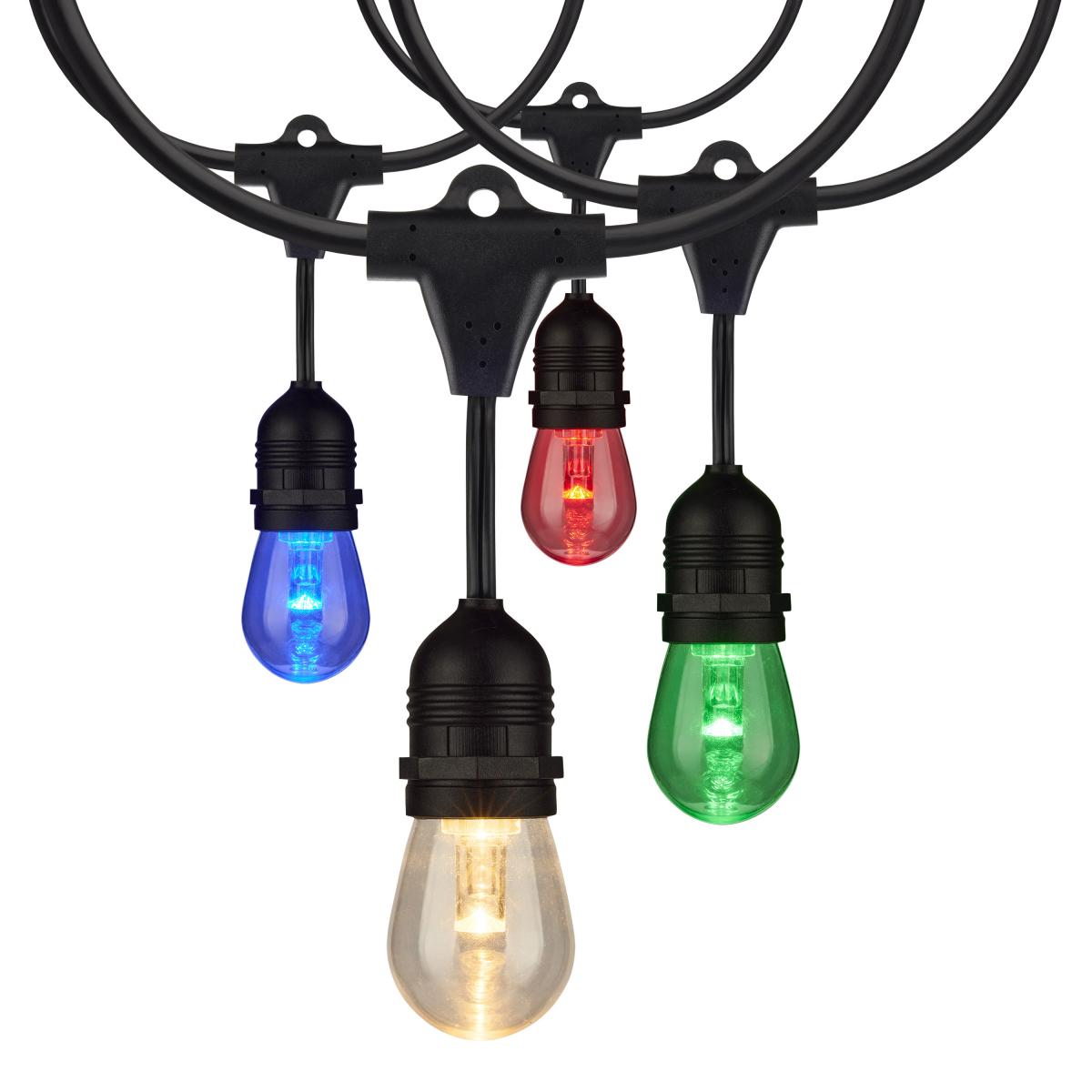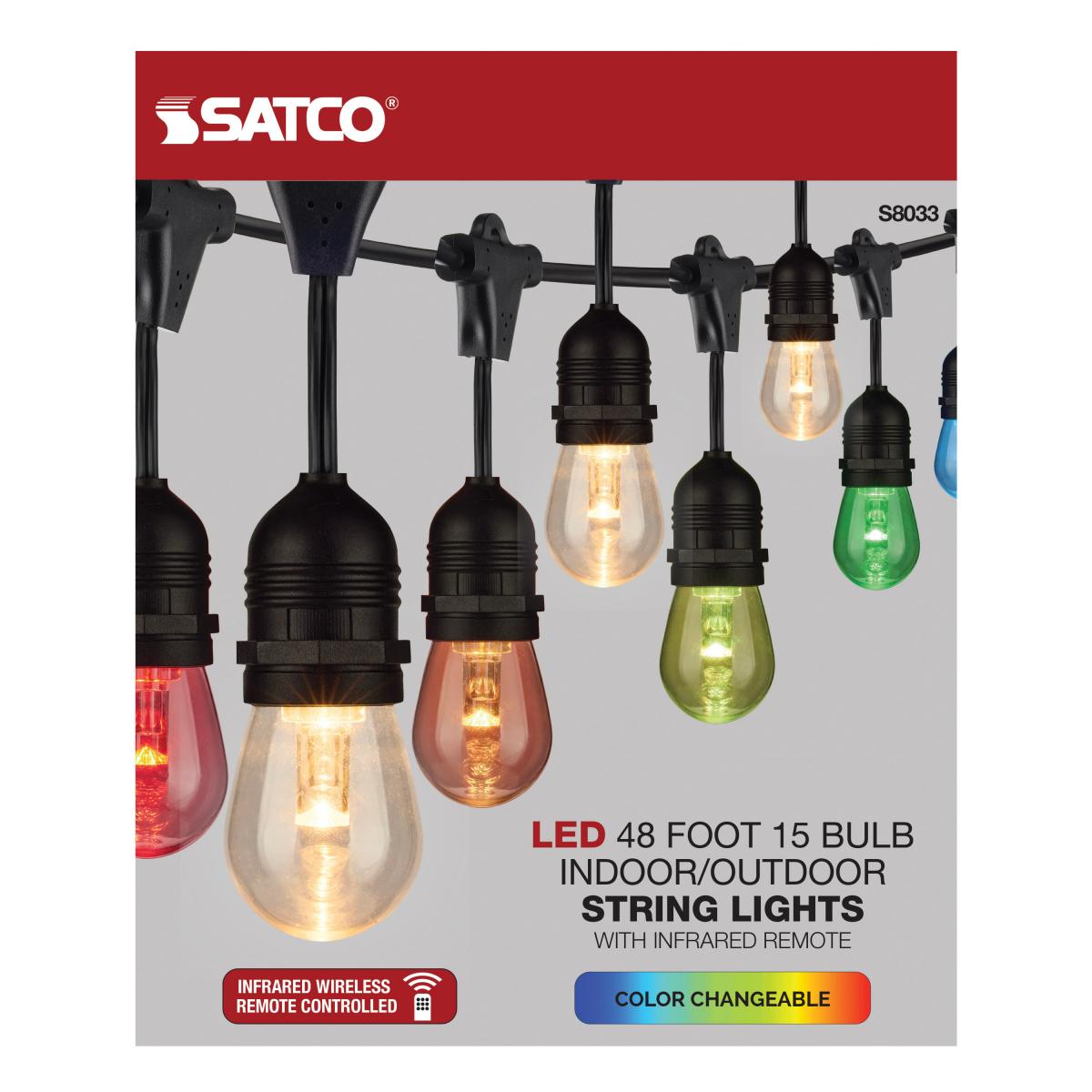 S8033 48FT/LED/SL/S14/IRR/RGBW/12 48Ft; LED String Light; 15-S14 lamps; 12 Volts; RGBW with Infrared Remote