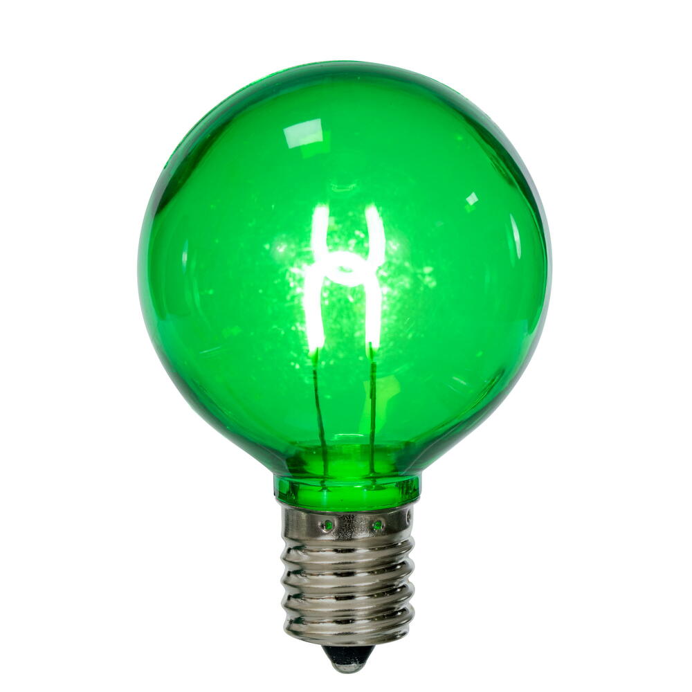 Vickerman G50 Transparent U-Shaped Filament Green Bulb, E17 Base, .6 Watts, 25 Pcs Assorted/Bag. Colors included are Blue, Red, Green, Purple and Amber.