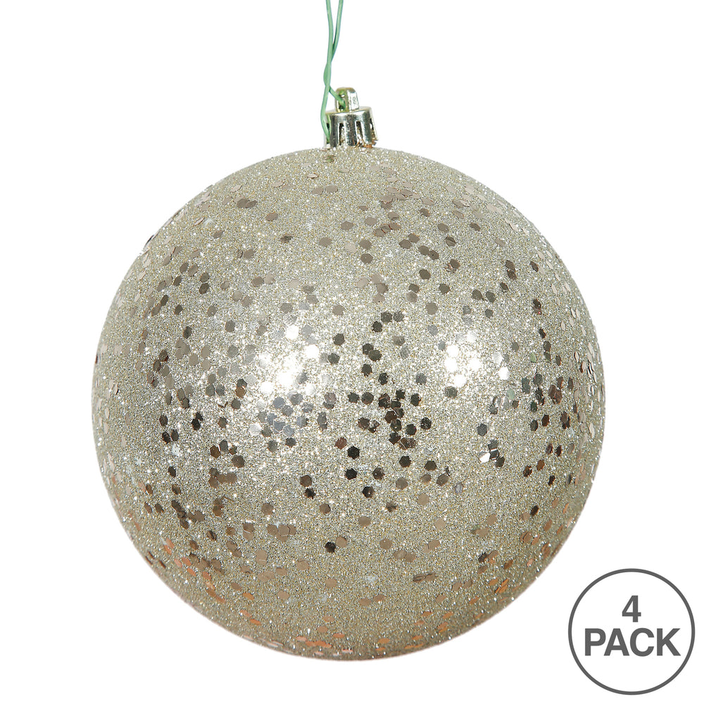 Vickerman 6" Champagne Sequin Ball Ornament 4 per Bag