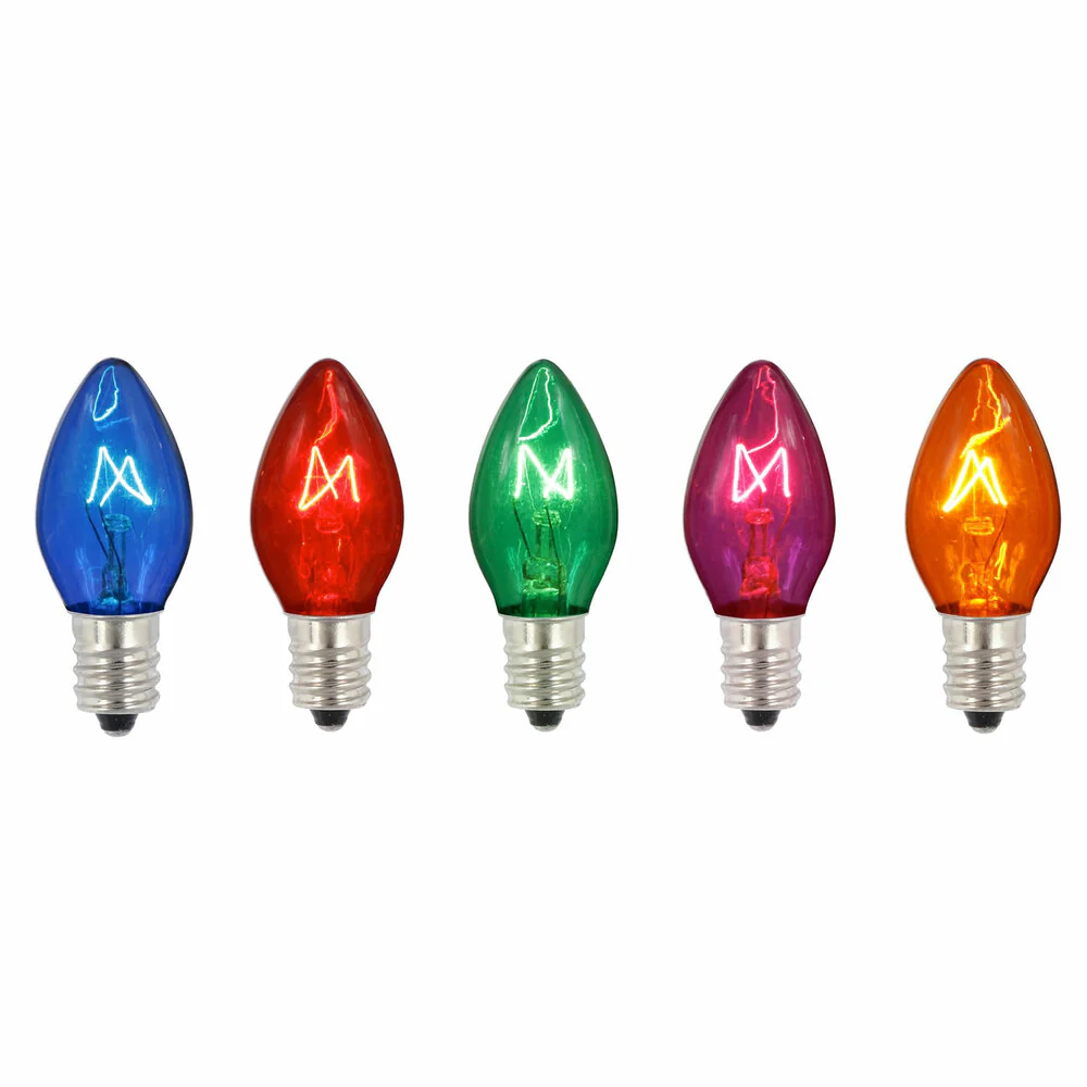 Vickerman C7 Transparent Multicolor Twinkle Replacement Bulbs 5 watts 120 Volt package of 25