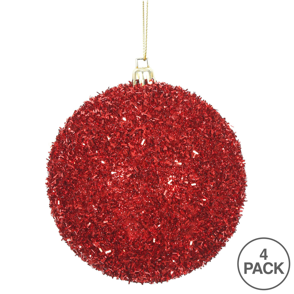 Vickerman 4" Red Tinsel Ball Ornament 4 per Bag