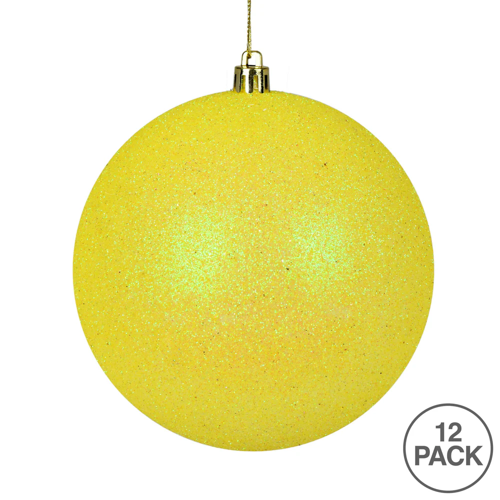Vickerman 3" Yellow Glitter Ball Ornament 12 per Bag