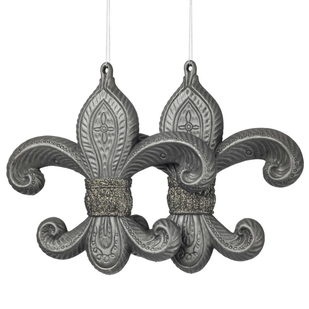 Vickerman 7.3" Gunmetal Antique Fleur-de-lis Christmas Ornament Pack of 2
