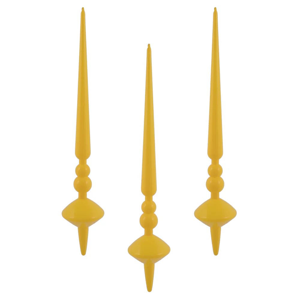 Vickerman 12" Yellow Shiny Cupola Finial. This long finial ornament adds depth and texture to any holiday decorating project. Made with shatterproof plastic. Includes 3 pieces per bag.