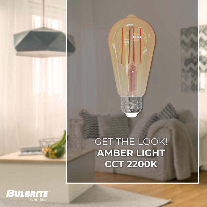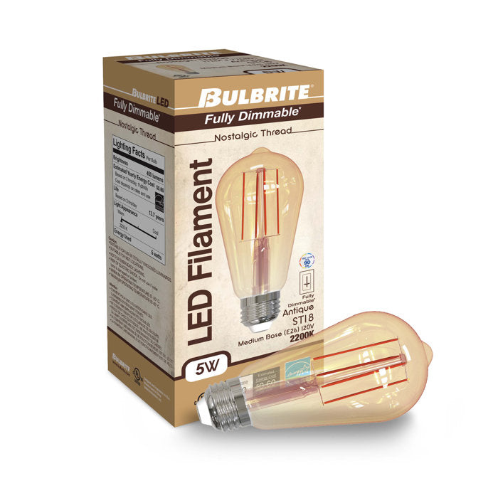 BULBRITE LED ST18 MEDIUM SCREW (E26) 5W DIMMABLE FILAMENT LIGHT BULB 2200K/AMBER 40W INCANDESCENT EQUIVALENT 2PK (776801)