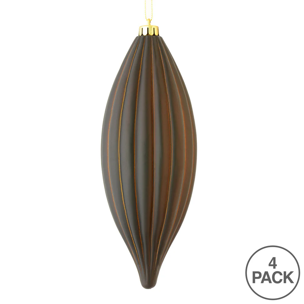Vickerman 8" Chocolate Matte Line Finial Ornament Pack of 4