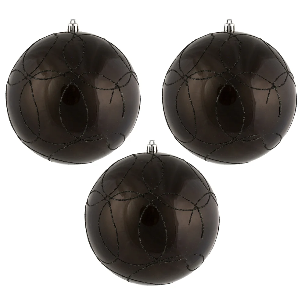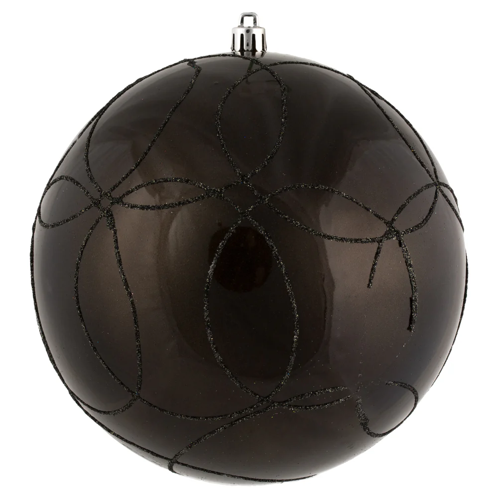 Vickerman 6" Gunmetal Candy Ornament with Circle Glitter Pattern 3 per Bag