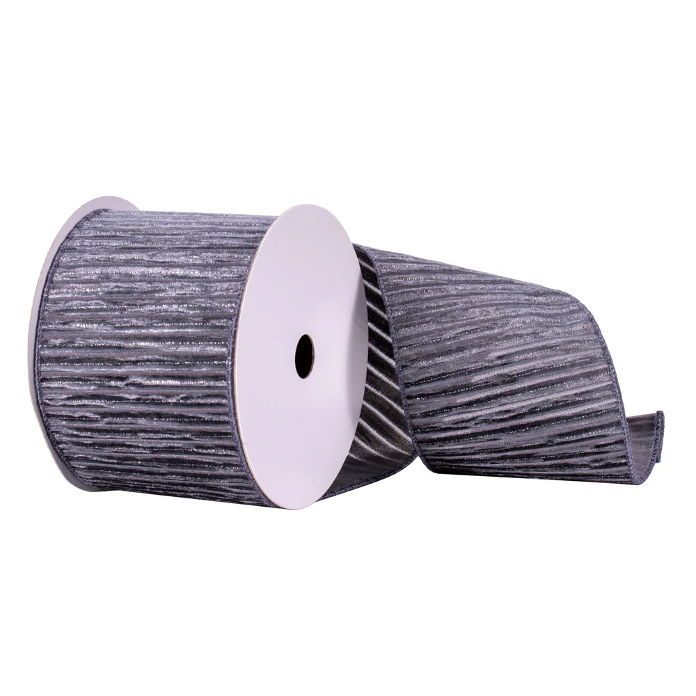 Vickerman 4" x 10 Yards Pewter Stripe Silver line Ribbon