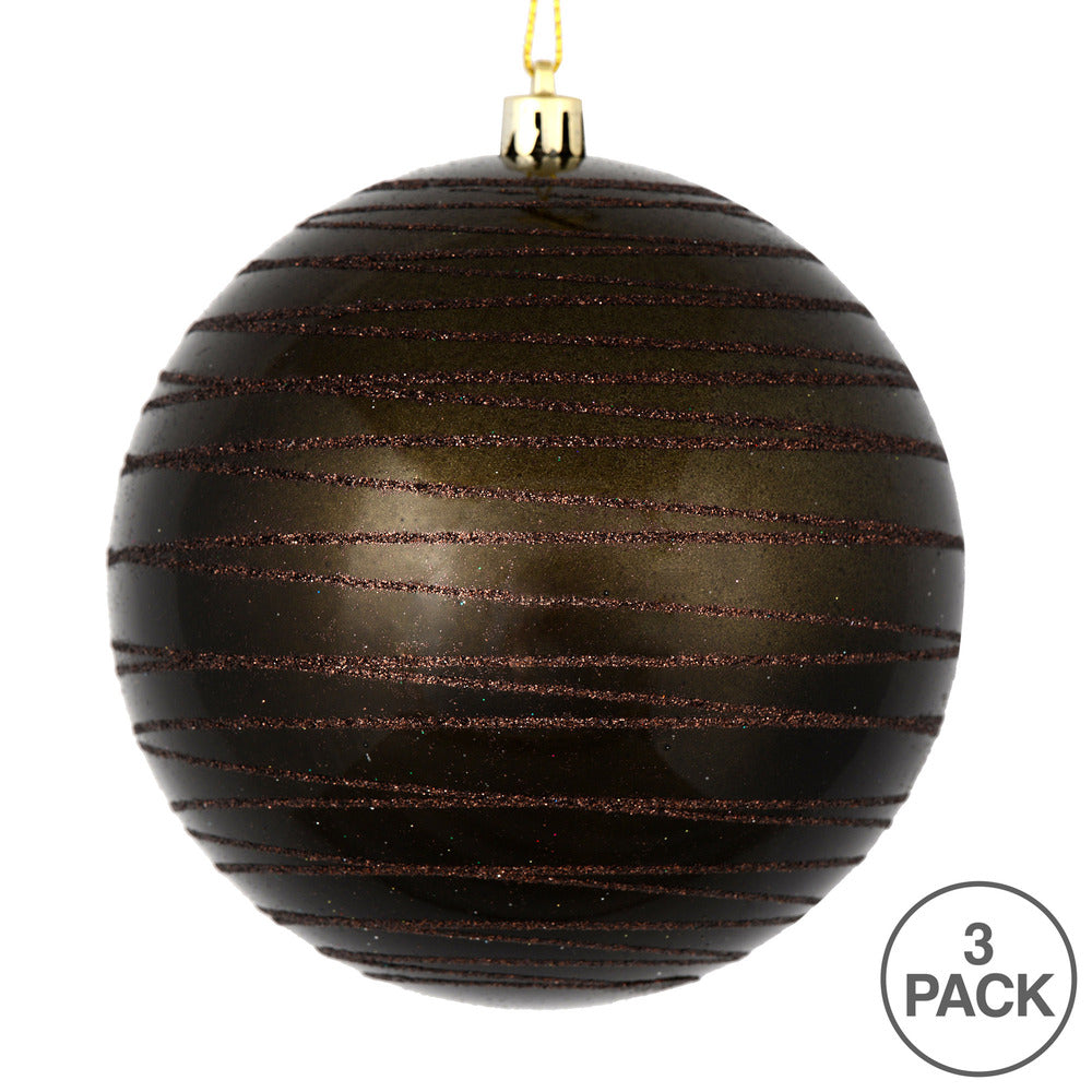 Vickerman 6" Gunmetal Candy Finish Ball Ornament with Glitter Lines 3 per Bag