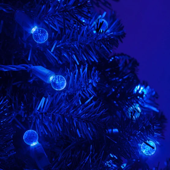 50 Light LED Razzberry (G12) Light Set Blue Bulbs on Green Wire, Approx. 17'8" Long