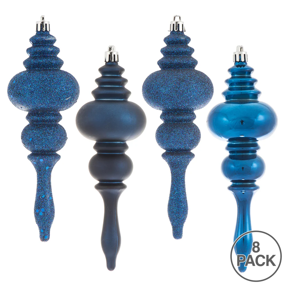 Vickerman 7" Midnight Blue 4-Finish Finial Ornament 8 per Box