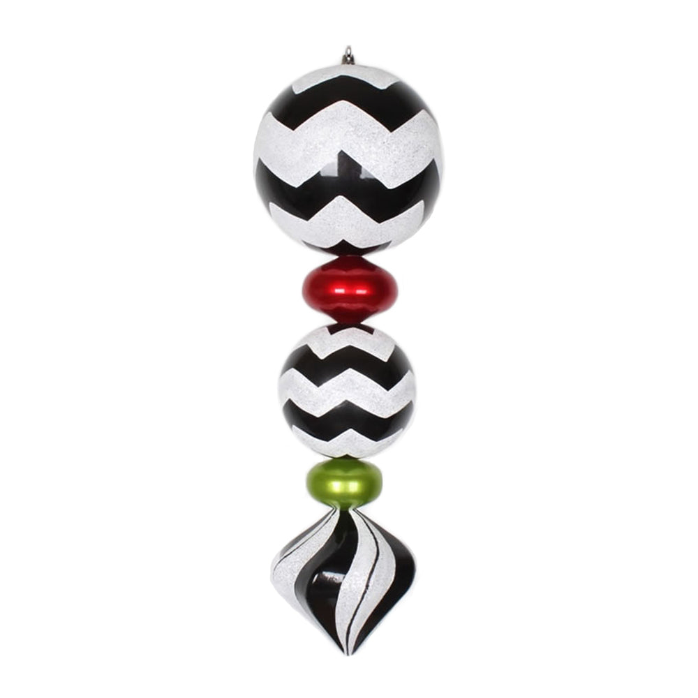 Vickerman 24" Black White Red and Lime Chevron Candy Finish Finial Ornament.