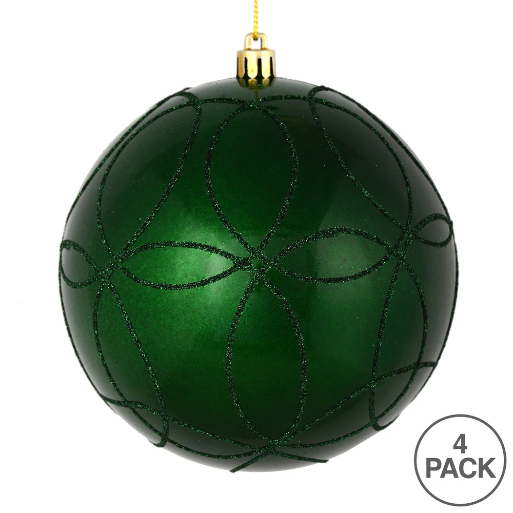 Vickerman 4.75" Emerald Candy Ornament with Circle Glitter Pattern 4 per Bag