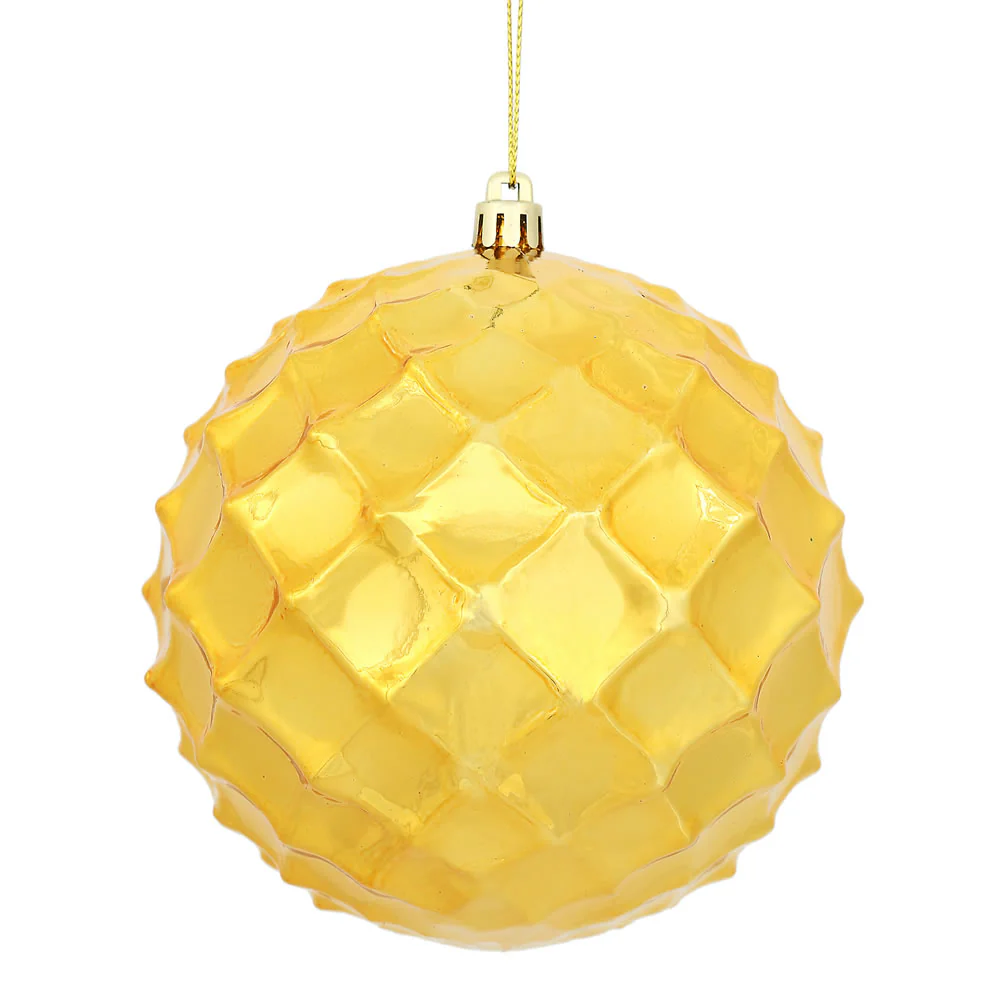 Vickerman 4.75" Antique Gold Shiny Diamond Bauble Christmas Ornament Set of 4