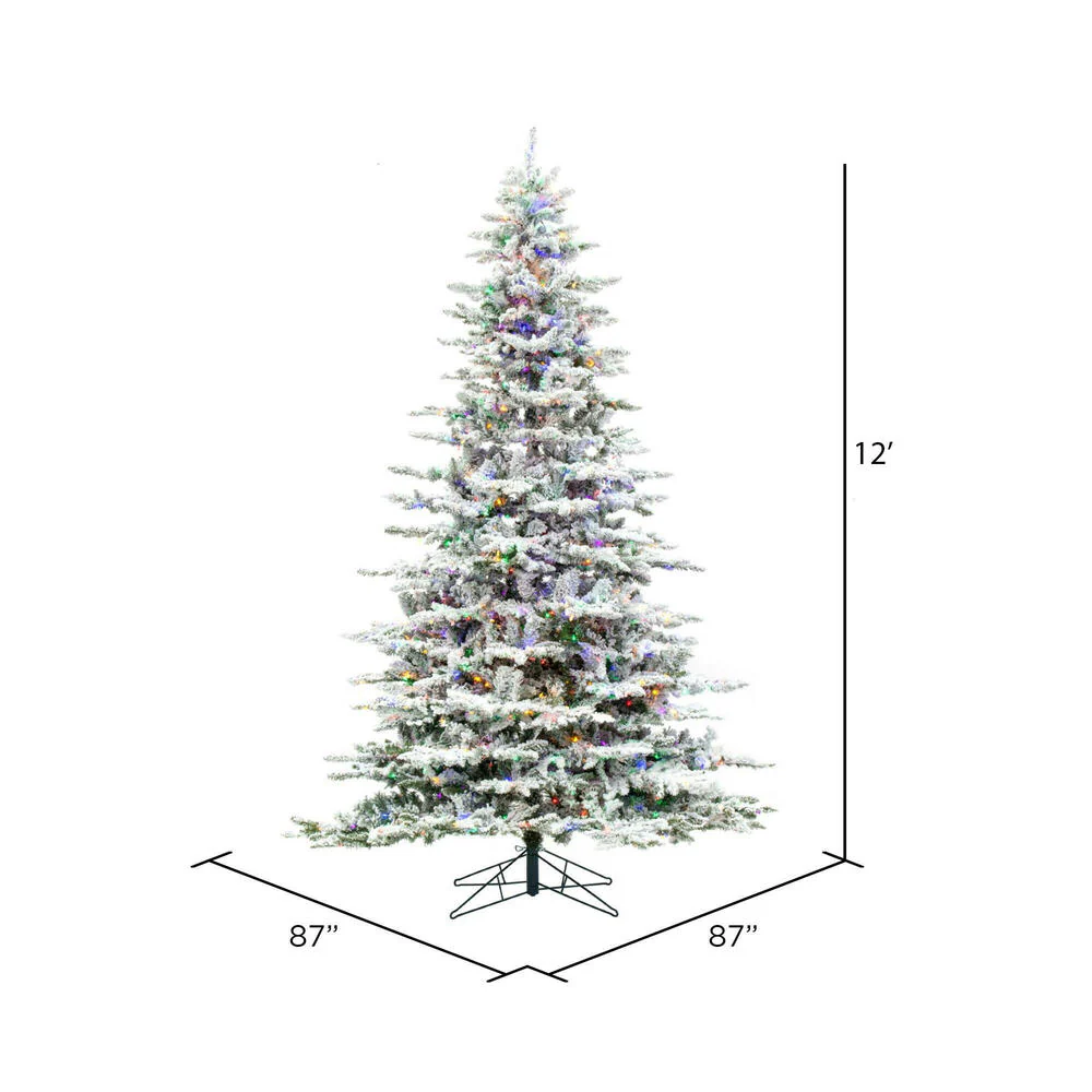 Vickerman 12' Flocked Utica Fir Artificial Christmas Tree Multi-Colored LED Lights