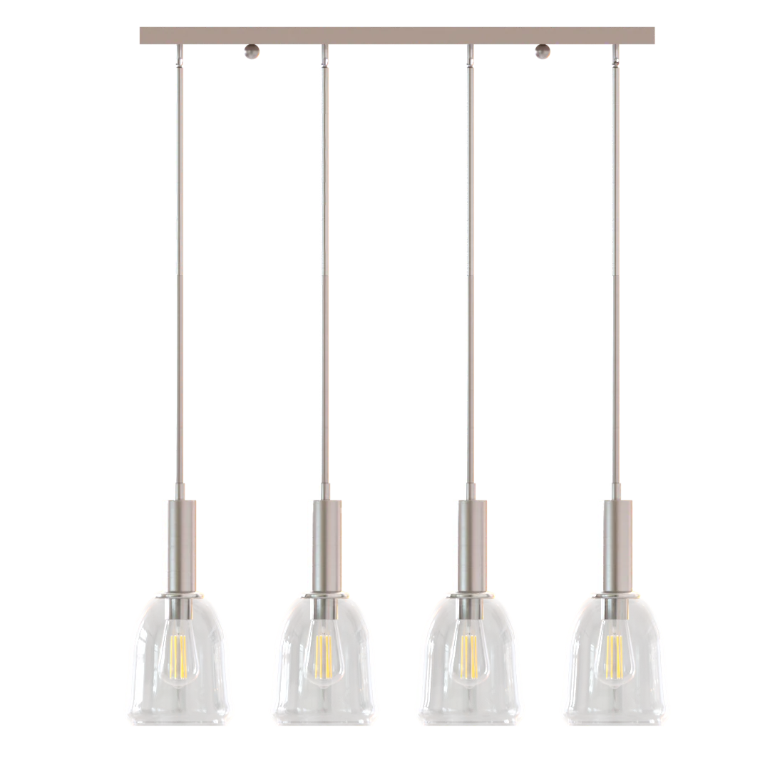 Elia Four Light Modern Linear Cluster Pendant Fixture with Glass Shades Satin Nickel