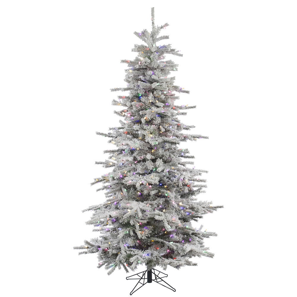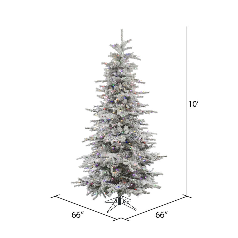 Vickerman 10' Flocked Sierra Fir Slim Artificial Christmas Tree 1100 Multi-Colored LED lights