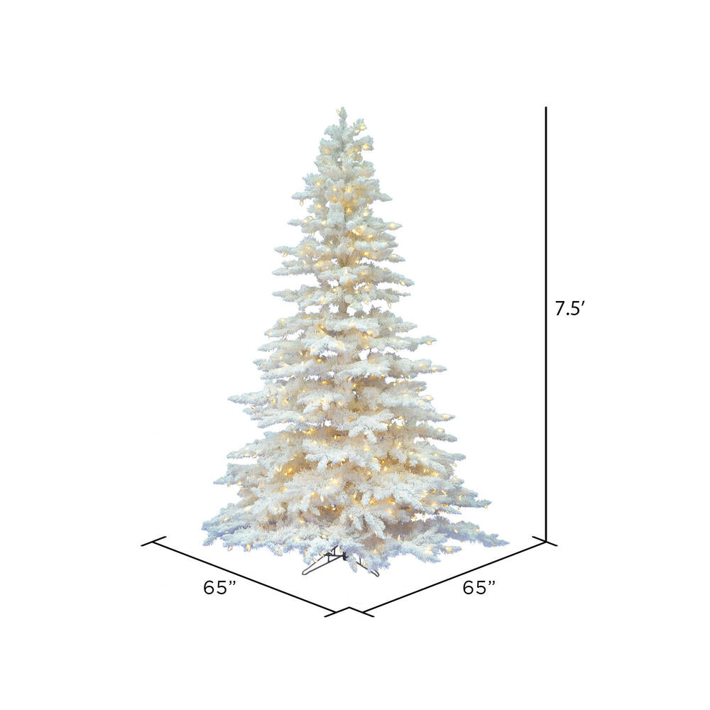 Vickerman 7.5' Flocked White Spruce Artificial Christmas Tree Pure White Single Mold LED Lights