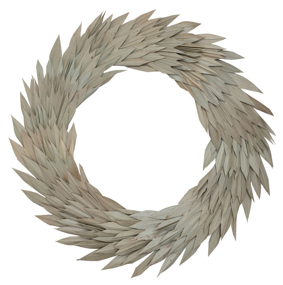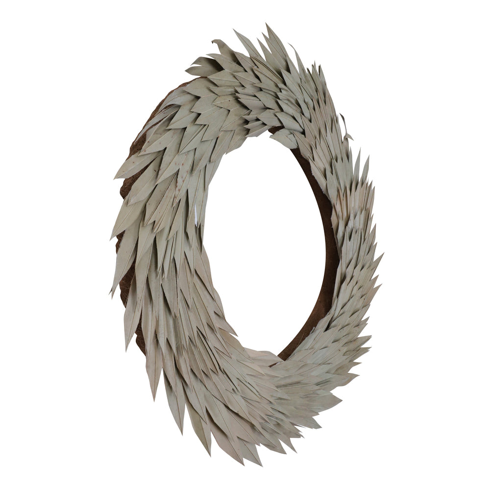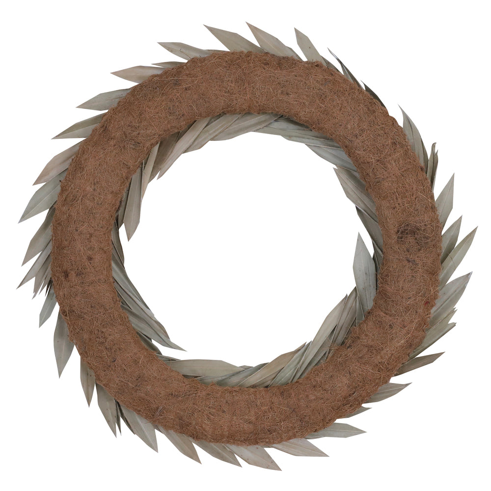 Vickerman Natural Botanicals 24" Natural Palm Sun Wreath. This wreath measures 24 inches in diameter. It features natural palm sun leaves on a coco fiber base. This is a dried and preserved natural product.