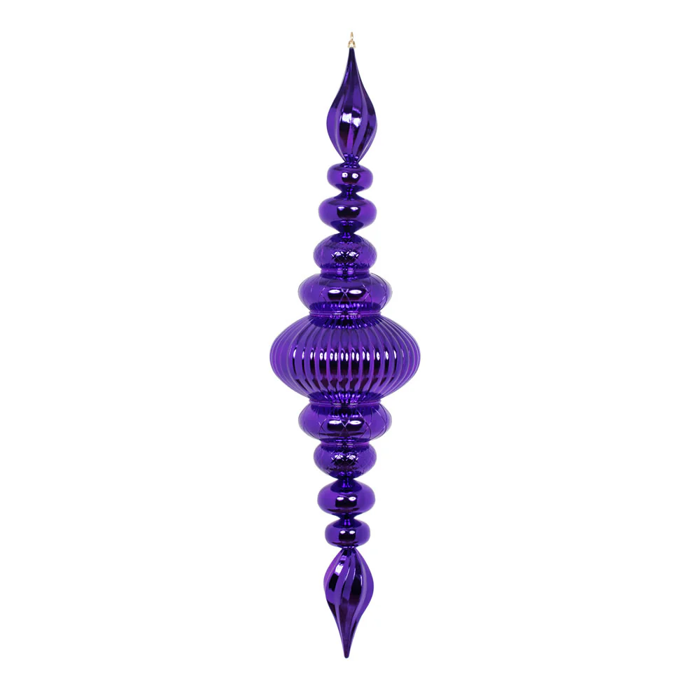 Vickerman 41" Plum Shiny Finial. This large ornament is an eye catching addition to any holiday decorating project. It features a metal hook for hanging. Made with shatterproof plastic.