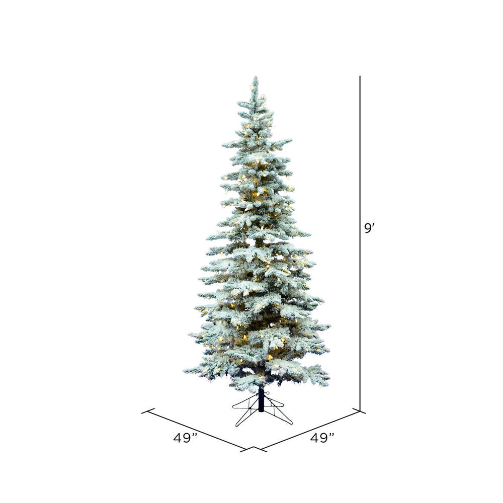 Vickerman 9' Flocked Utica Fir Slim Artificial Christmas Tree Pure White Single Mold LED Lights