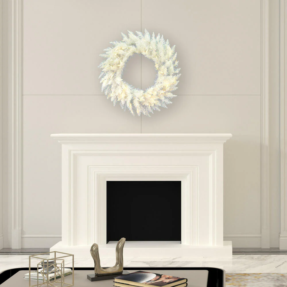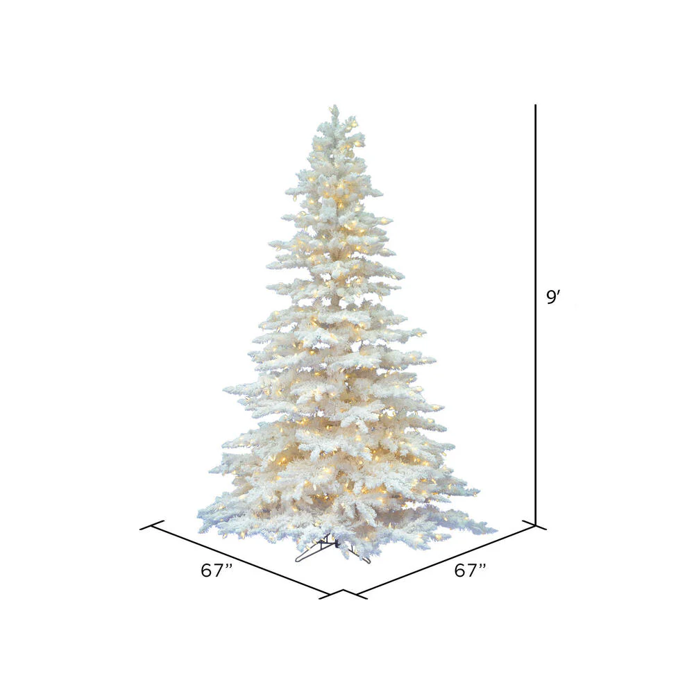Vickerman 9' Flocked White Spruce Artificial Christmas Tree Pure White LED Lights