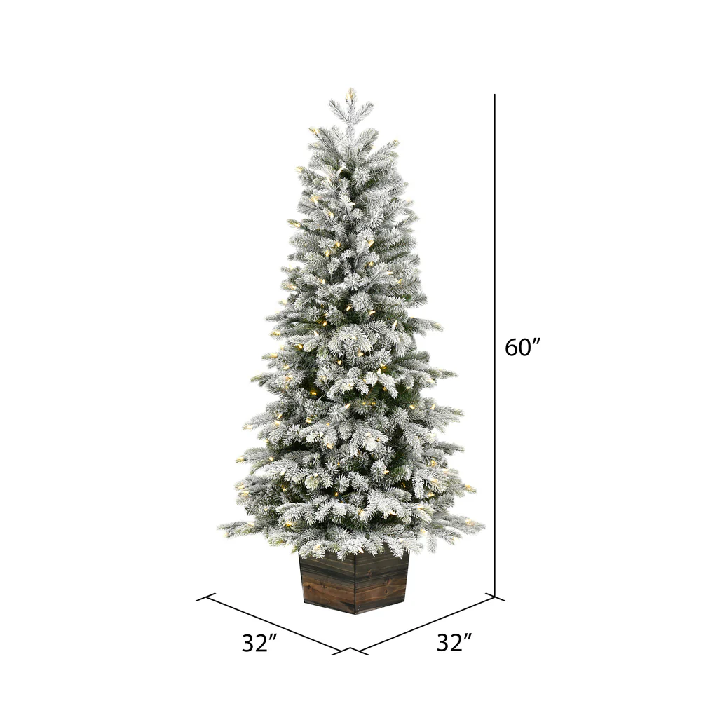 Vickerman 5' x 32" Frosted Wendell Slim Potted Pine Artificial Christmas Tree Warm White LED Lights