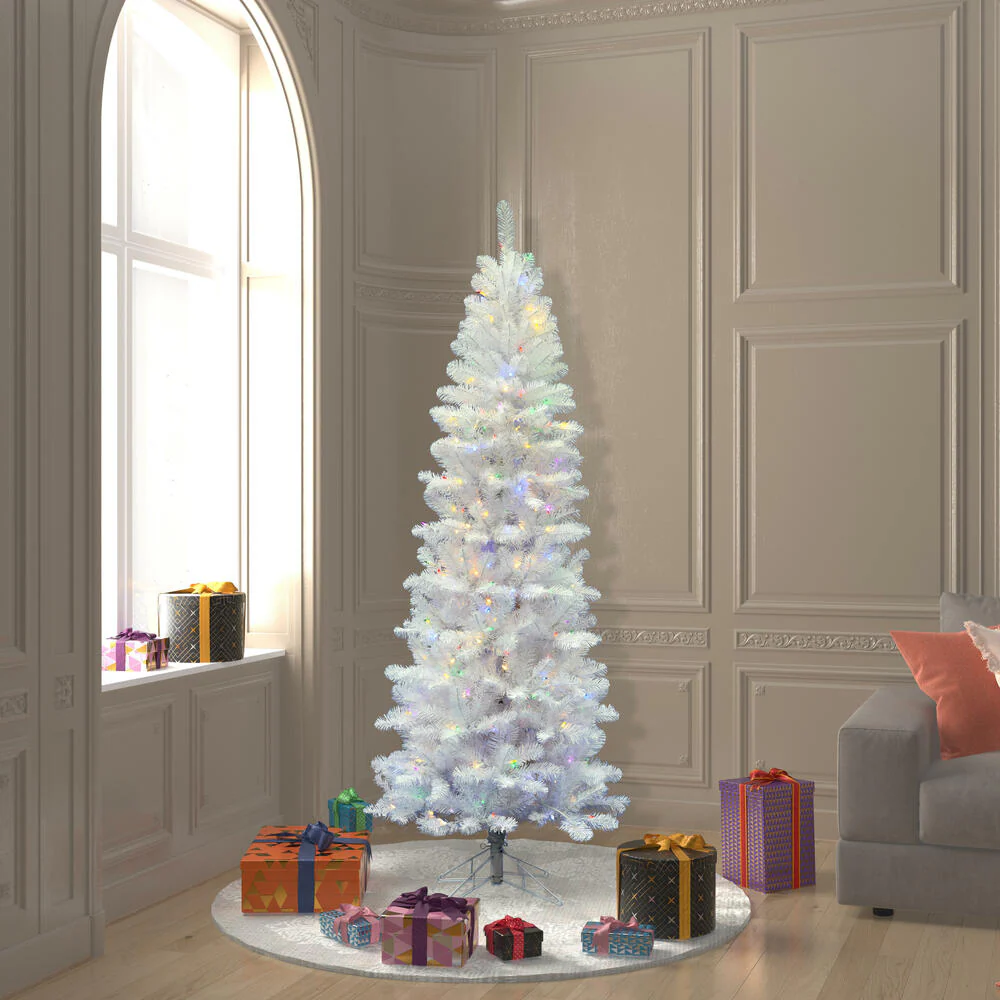 The Vickerman 18-foot x 86-inch Artificial Pre-Lit Slim Grand Teton Frame Tree with LED Multi-Colored 5mm Single Mold Lights