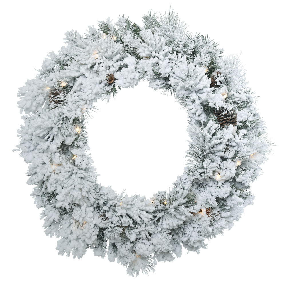 Vickerman 30" Flocked Ashton Pine Artificial Christmas Wreath Warm White Dura-lit LED Mini Lights