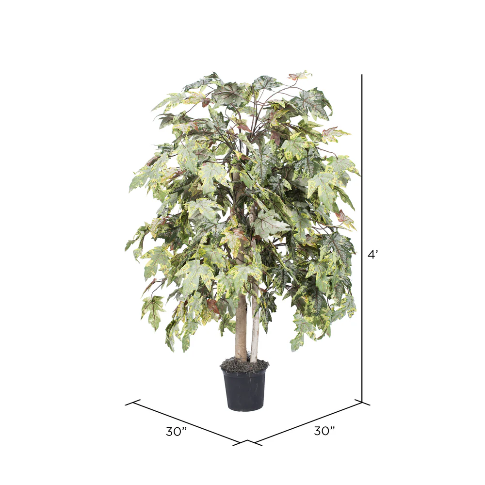 Vickerman 4' Artificial Frosted Maple Bush Black Plastic Pot.