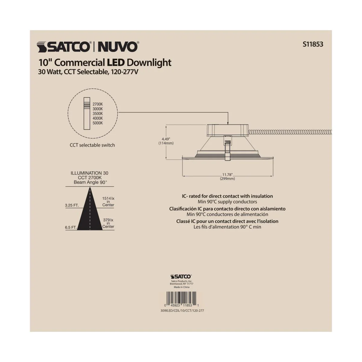 S11853 30WLED/CDL/10/CCT/120-277 30 Watt Commercial LED Downlight; 10 in.; CCT Adjustable; 120-277 volt; Econo