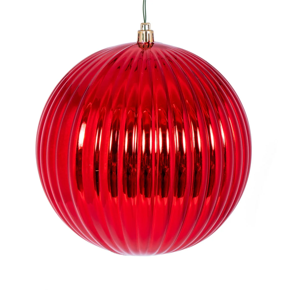 Vickerman 6" Red Shiny Lined Ball Ornament 4 per Bag.
