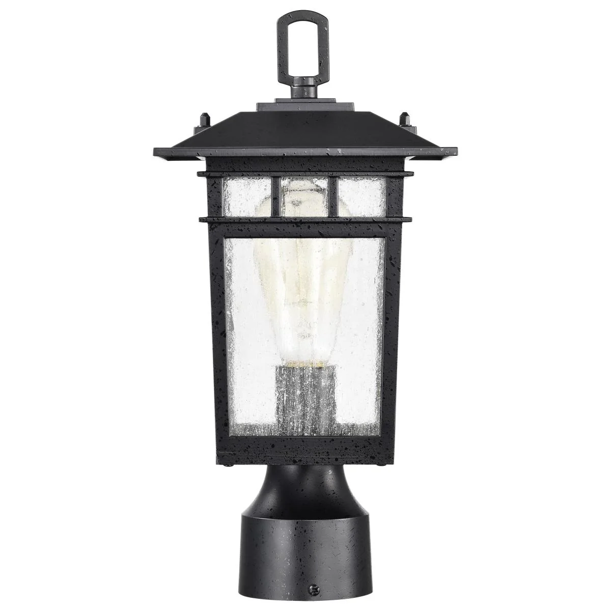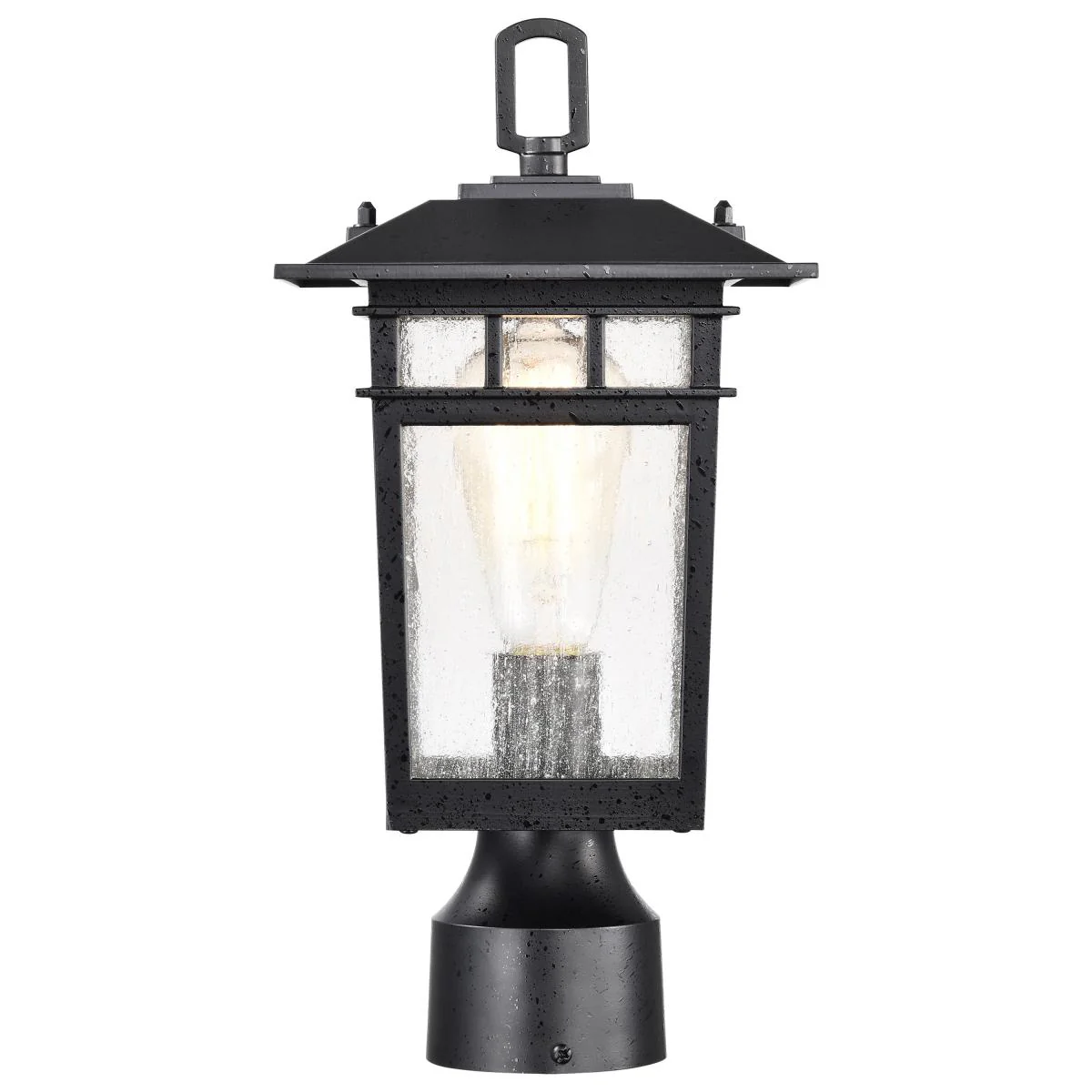 60-5956 COVE NECK 1LT OUTDOOR SM POST Cove Neck Collection Outdoor Medium 14 inch Post Light Pole Lantern; Textured Black Finish with Clear Seeded Glass