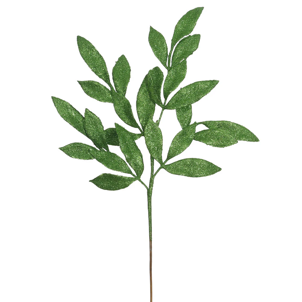 Vickerman 22" Green Glitter BayLeaf Artificial Christmas Spray. Includes 12 sprays per pack.