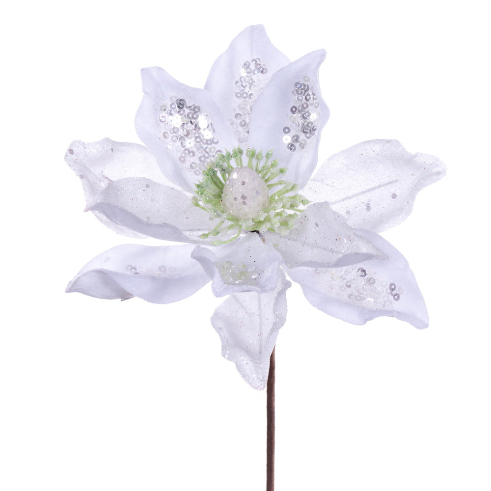 Vickerman 15" Artificial White Deluxe Magnolia Christmas Stem 8" Flower 6 per bag