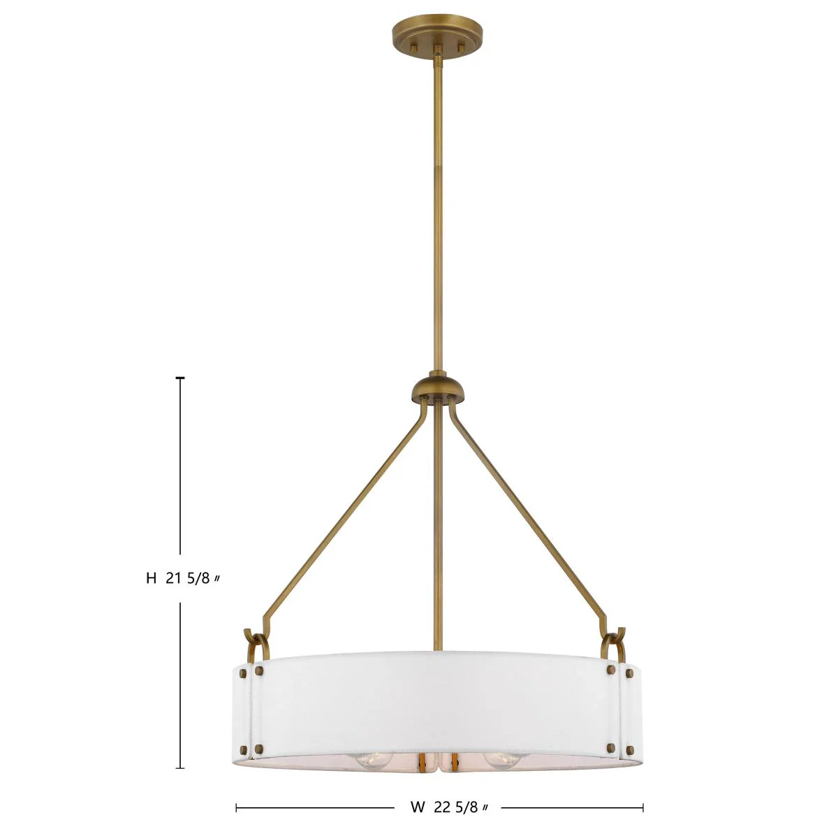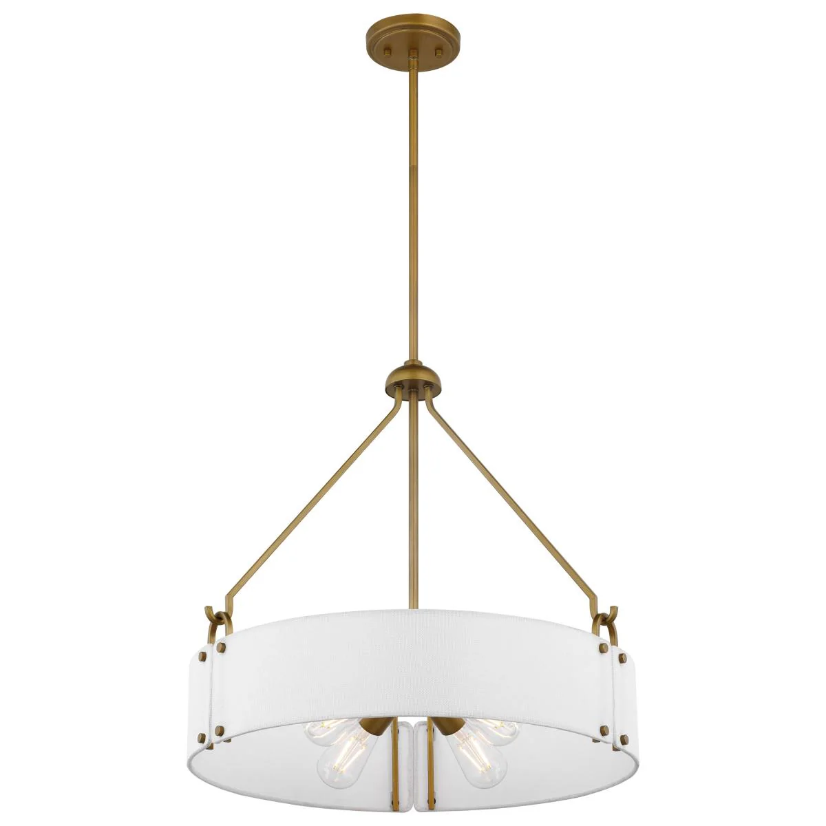 60-7691 HALTER 4LT PENDANT Halter; 4 Light Pendant; Medium Base; 60 Watt;Natural Brass Finish; White Fabric Shade