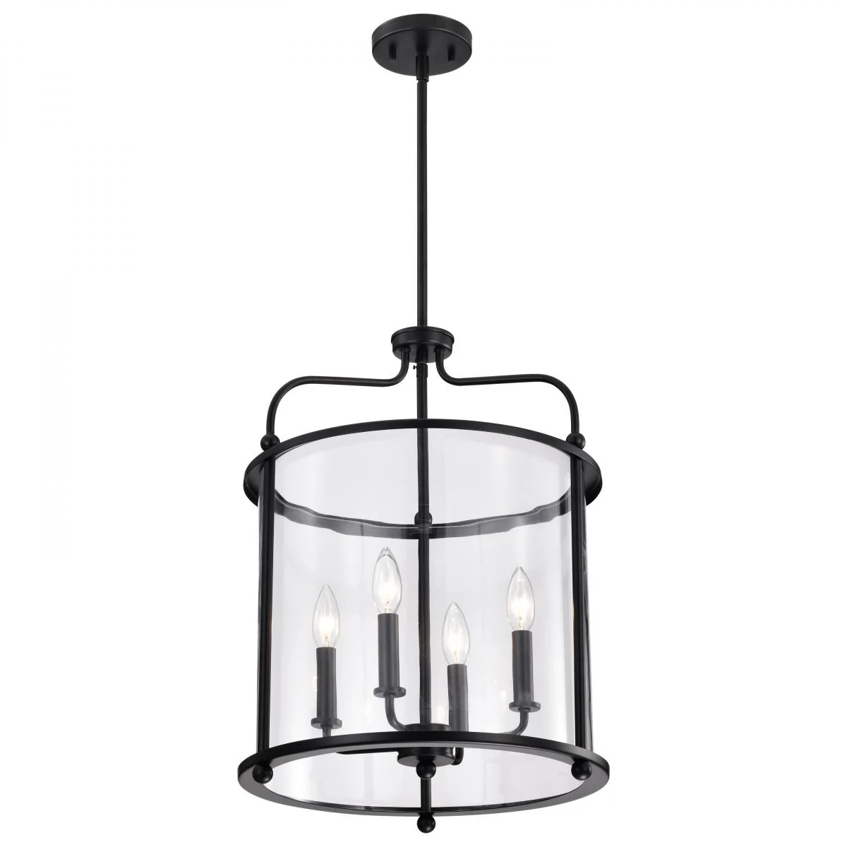 60-7946 YORKTOWN 4LT PENDANT Yorktown 4 Light Pendant; Matte Black Finish; Clear Glass