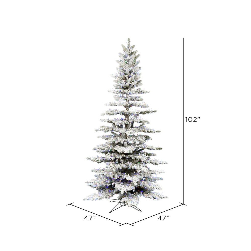 Vickerman 8.5' x 47" Flocked Stratton Pine Artificial Christmas Tree Low Voltage LED Multi-color Wide Angle 3mm Lights