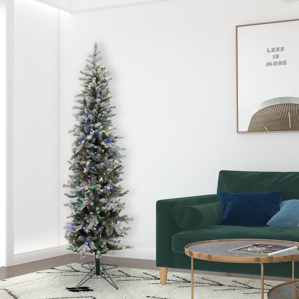 Vickerman 12' x 59" Hillside Pencil Spruce Artificial Christmas Tree Multi-colored Dura-Lit LED lights