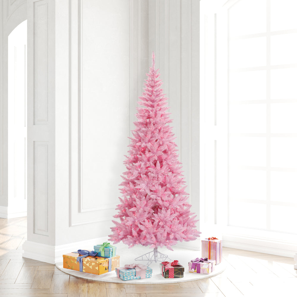 Vickerman 6.5' Pink Fir Slim Artificial Christmas Tree Pink Dura-lit LED Lights