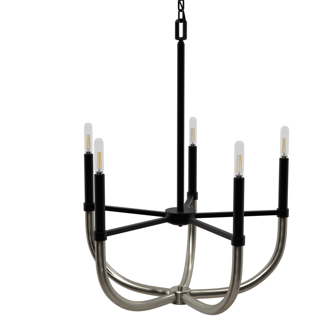 Philomena Five Light Modern Chandelier Fixture Black and Brushed Nickel