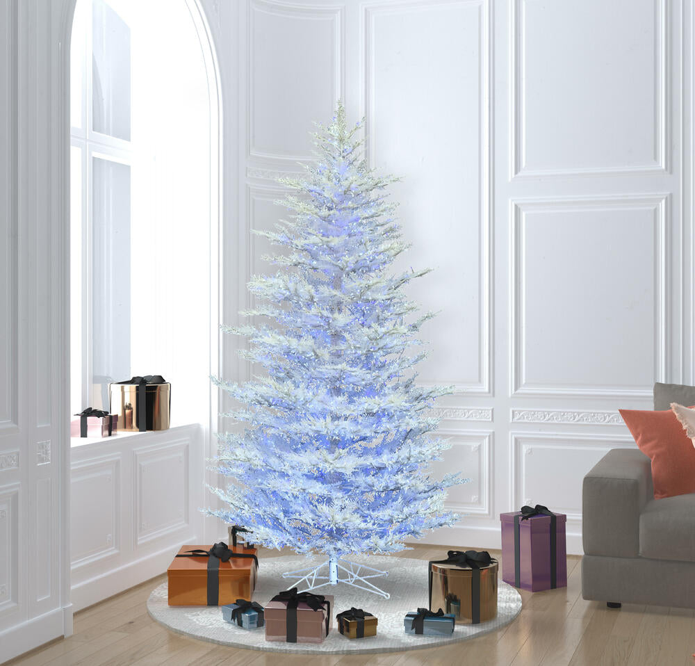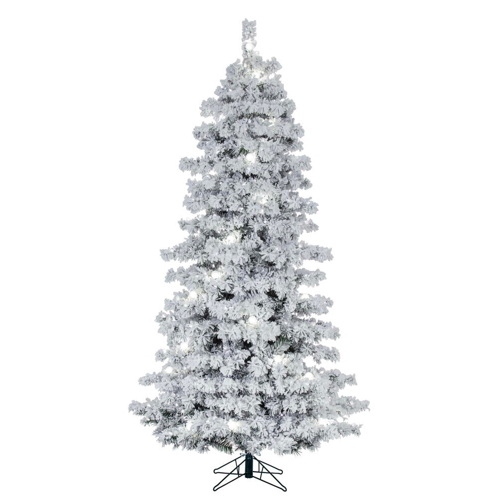 Vickerman 9' Flocked White Spruce Artificial Christmas Tree Multi-Colored Lights