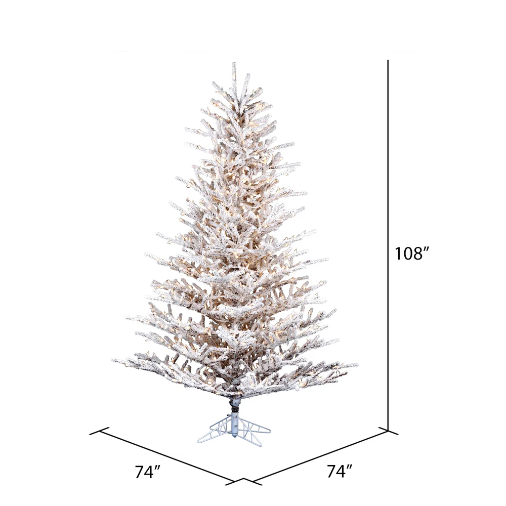 Vickerman 9' x 74" Flocked Stick Pine Tree Dura-Lit® LED Warm White Mini Lights.