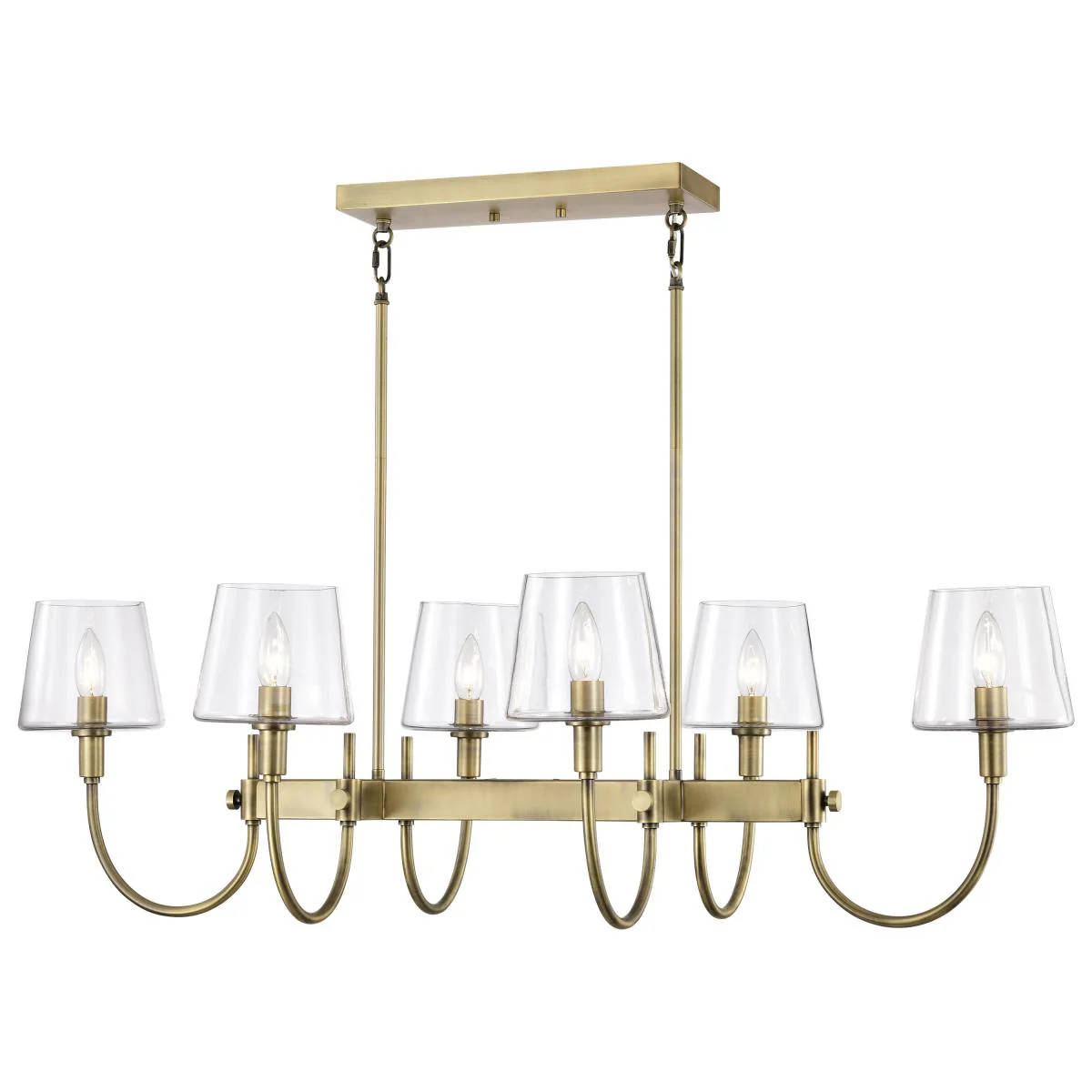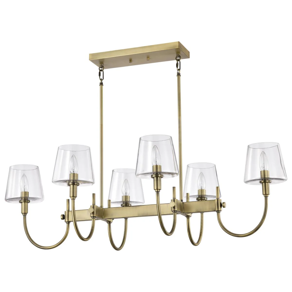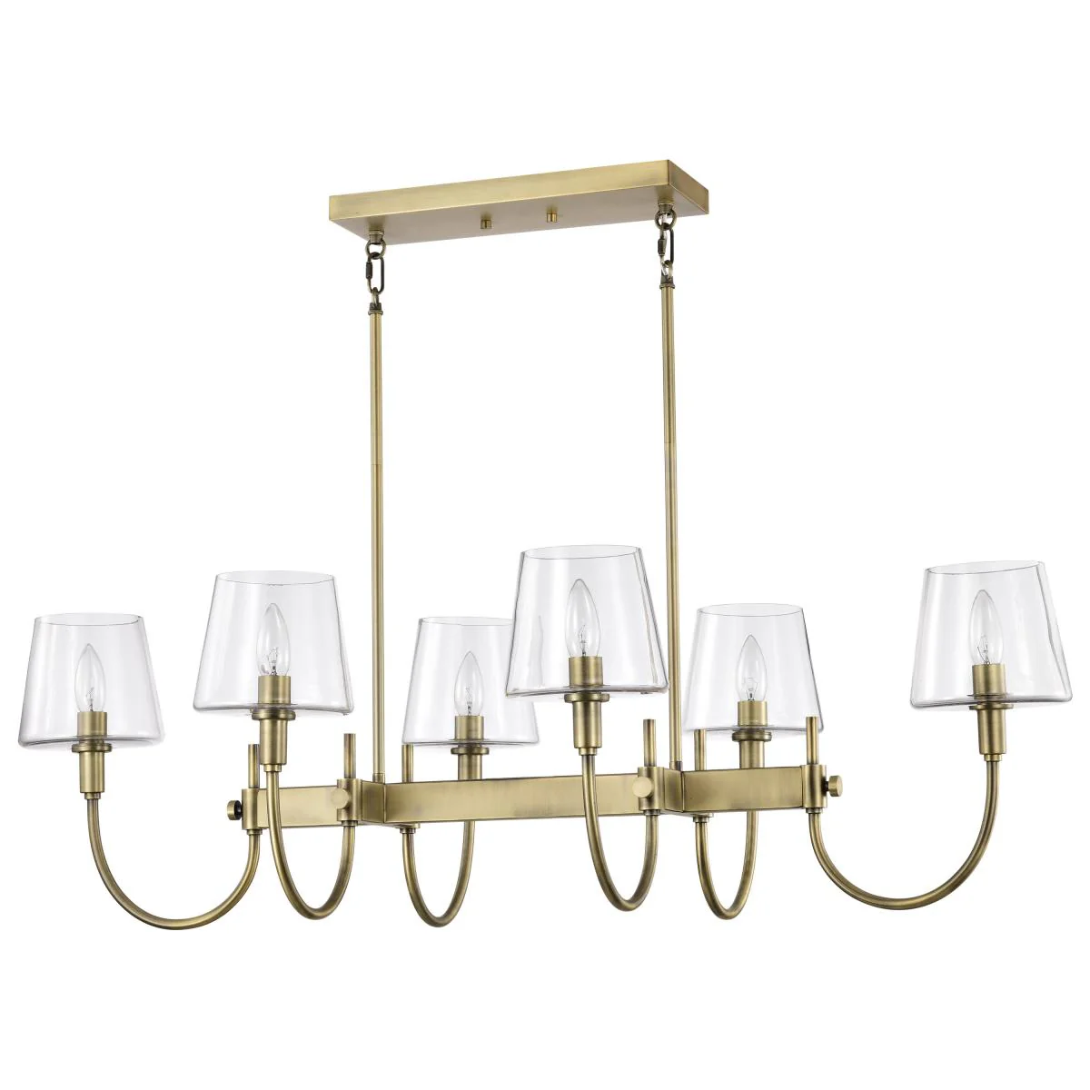 60-7887 BROOKSIDE 6 LT ISLAND PENDANT Brookside 6 Light Island Pendant; Vintage Brass Finish; Clear Glass