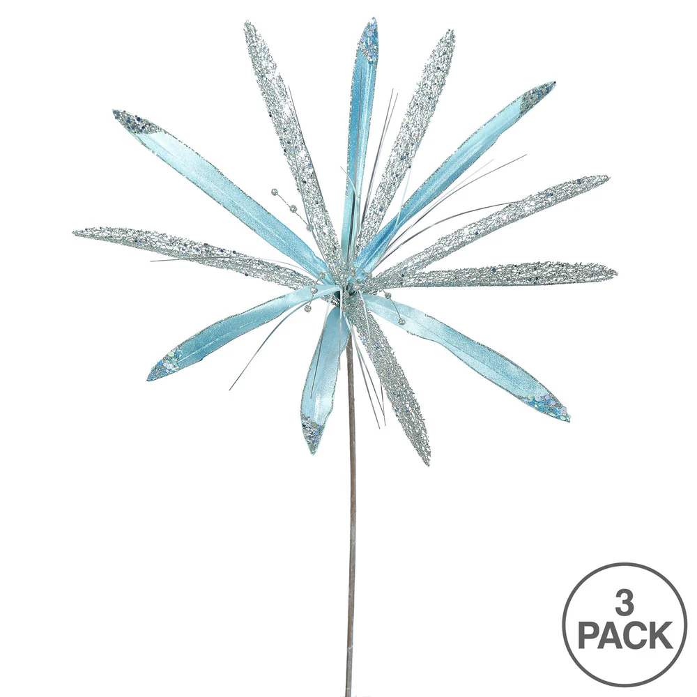 Vickerman 24" Sea Blue Velvet Papyrus Artificial Christmas Pick 3 per Bag